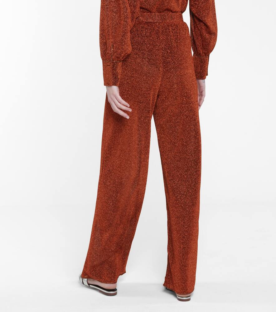 Пусть Oséree — восходящий бренд, предлагающий гламурные образы у бассейна — дополнит ваш гардероб для отдыха такими вещами, как брюки Lumière. Они изготовлены из эластичного трикотажа с металлическим оттенком и чувственной полупрозрачной отделкой, имеют высокую посадку, эластичный пояс и широкие штанины. Дополните образ подходящим топом медно-коричневого цвета.
