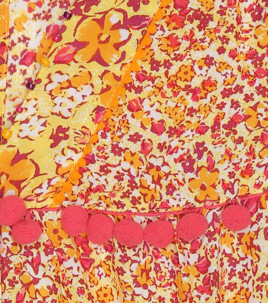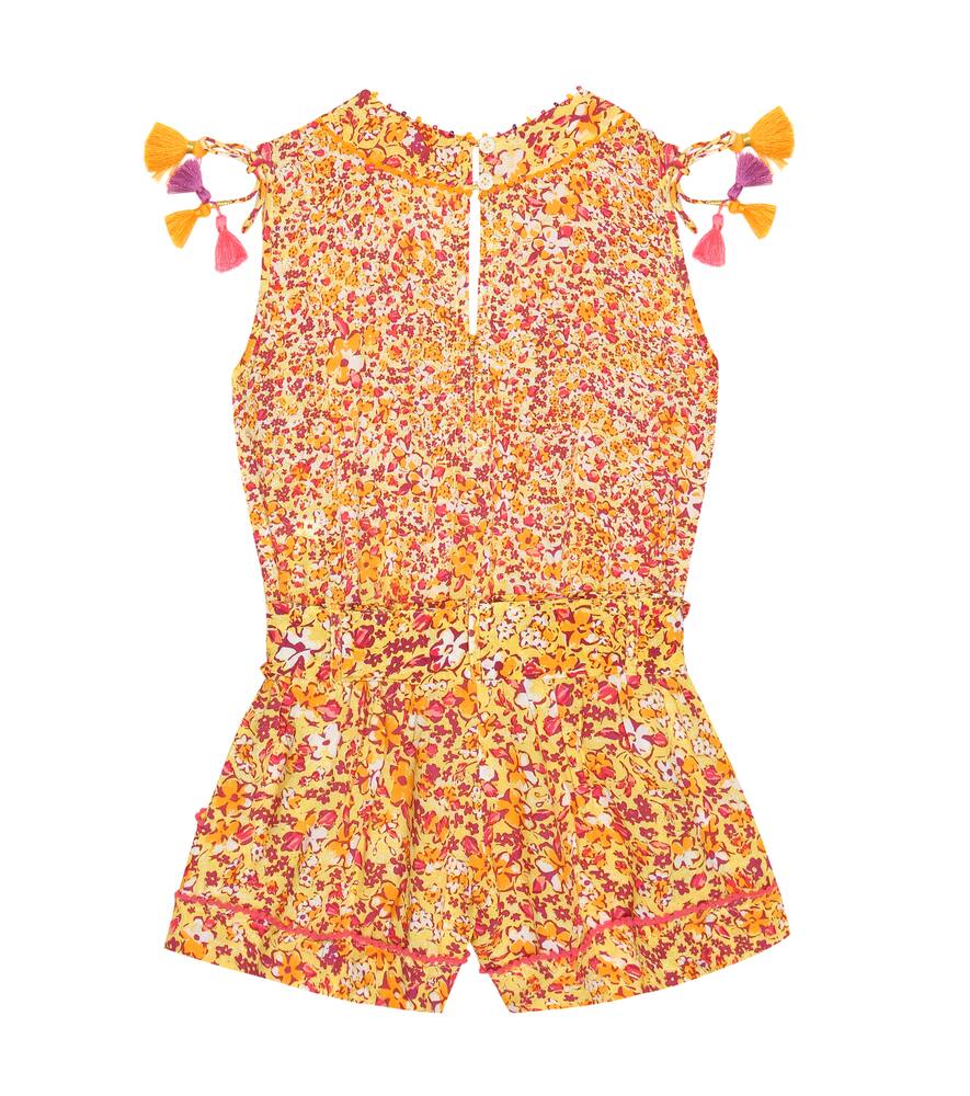 Будь то пляж или парк, ваш маленький модник будет в восторге от возможности побегать в комбинезоне Mya от Poupette St Barth Kids. Его практичный силуэт дополнен жёлто-розовым цветочным принтом, а также игривыми помпонами и отделкой из кисточек.