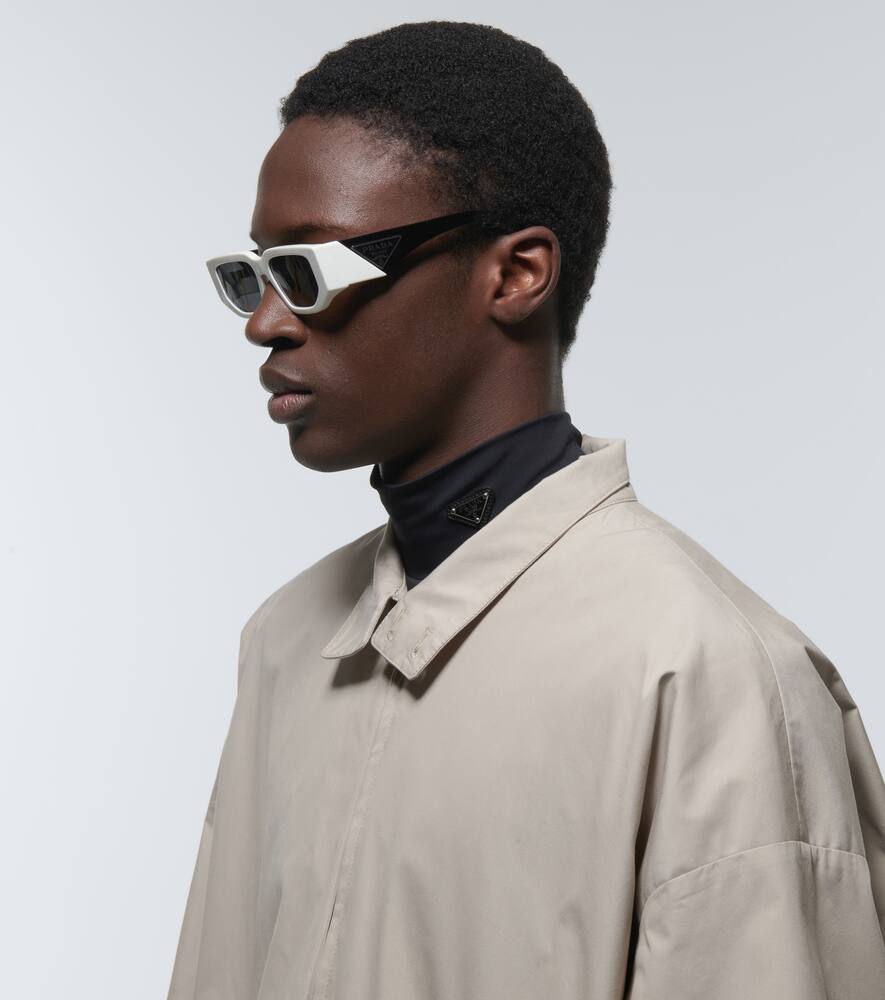 Подчеркните любовь Prada к угловатым формам с помощью солнцезащитных очков PR 09ZS. Эта модель с угловатой прямоугольной оправой из ацетата дополнена культовыми треугольными логотипами на обеих дужках.