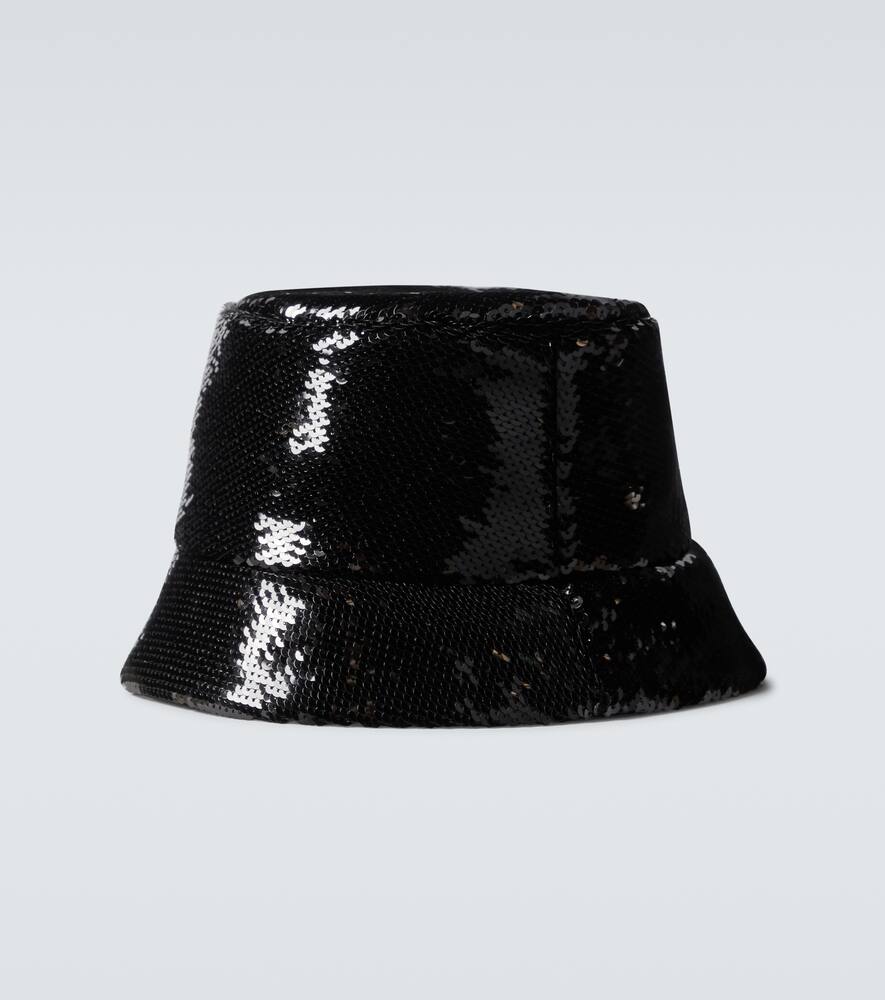 Эта чёрная панама от Prada выполнена из смесового шёлка и расшита пайетками, которые придают современный стиль сияющий вид. Вышитый белый логотип завершает дизайн.