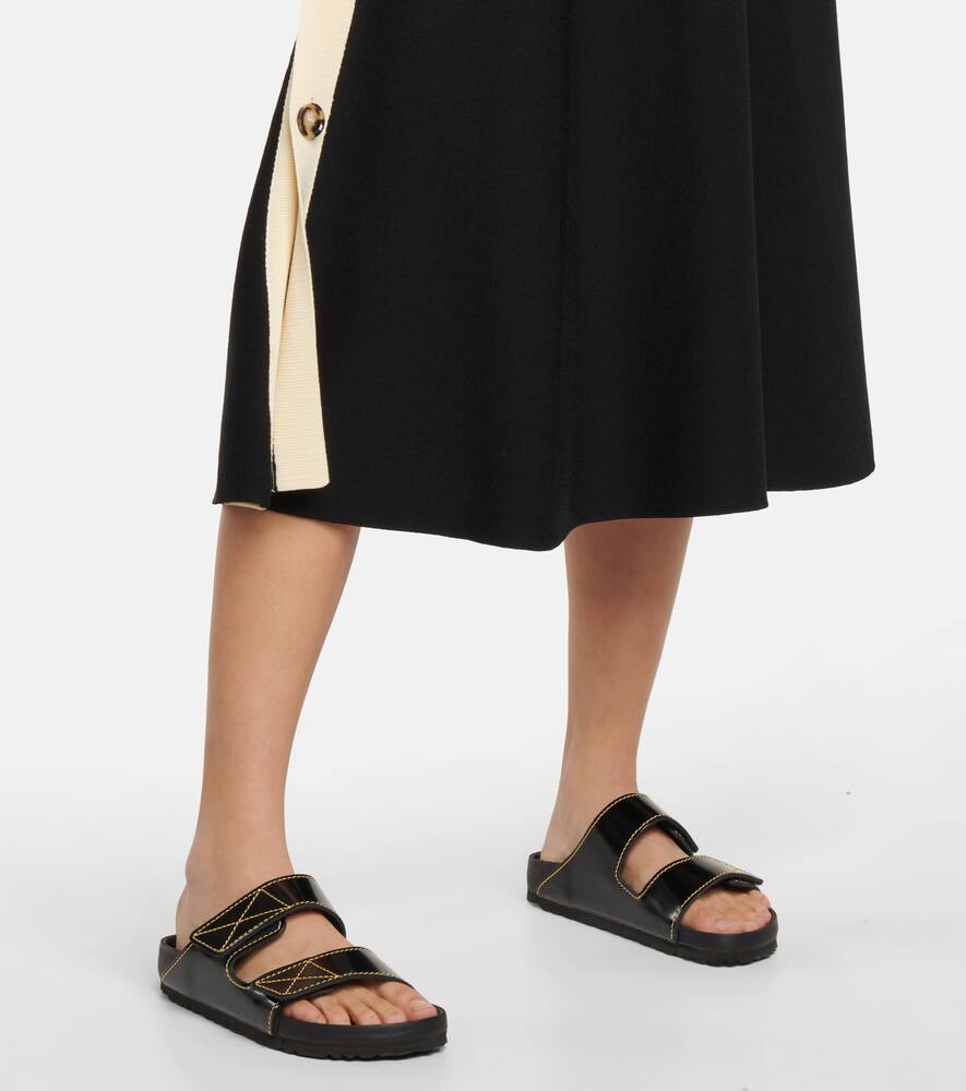 Proenza Schouler представляет обновленную версию культовых сандалий Birkenstock Arizona в современном минималистичном монохромном варианте. Эта черная кожаная пара дополнена желтой декоративной строчкой поверх ремешка на липучке VELCRO. Фирменные формованные стельки Birkenstock – легкие и комфортные – делают эту пару идеальным сочетанием моды и функциональности.