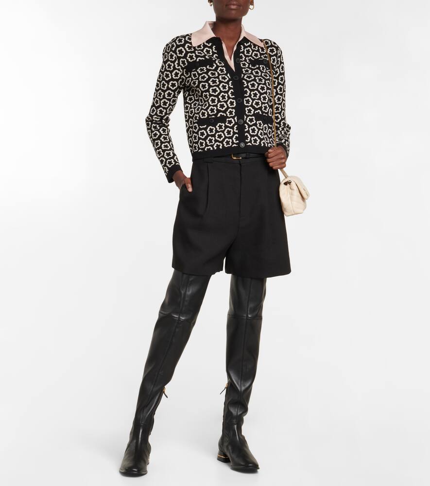 Эти сапоги от Tory Burch, длиной выше колена, подойдут как под узкие брюки, так и под мини-платья. Они выполнены из кожи, имеют панельную конструкцию, фирменный многослойный каблук и золотистую фурнитуру.
