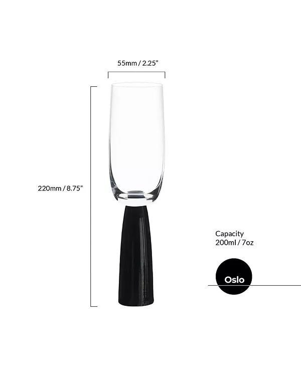 Эти фужеры для шампанского, воплощающие элегантный скандинавский стиль, отличаются современным дизайном, четкими линиями и округлыми чашами. Их уникальный облик обусловлен фирменной толстой стеклянной ножкой Oslo с глянцевой черной отделкой. Набор отличается прекрасным весом и приятным на ощупь покрытием, что делает его идеальным подарком для особых случаев.