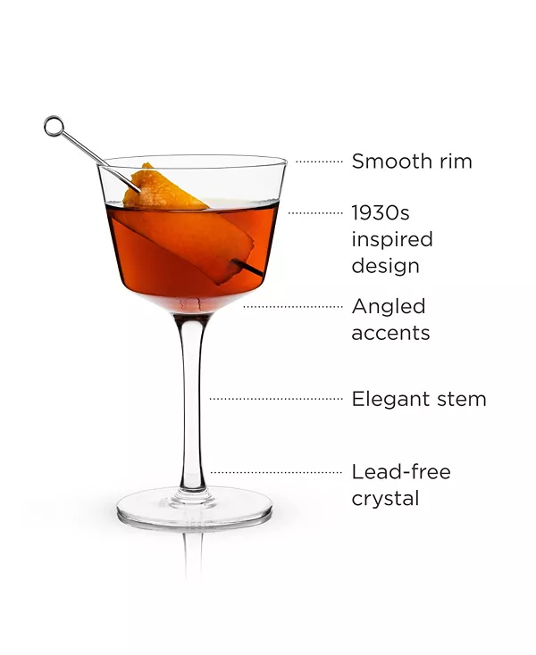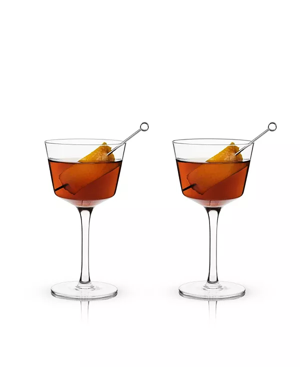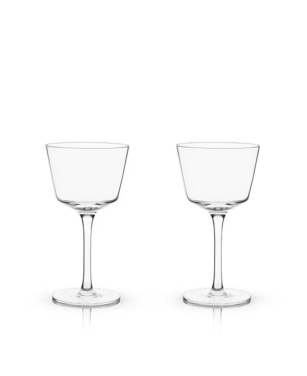 Переосмысленный в потрясающем современном силуэте, этот набор бокалов-непроливаек от Viski представляет собой элегантную альтернативу стандартному бокалу для мартини и более изысканное решение для их двоюродного брата — купе