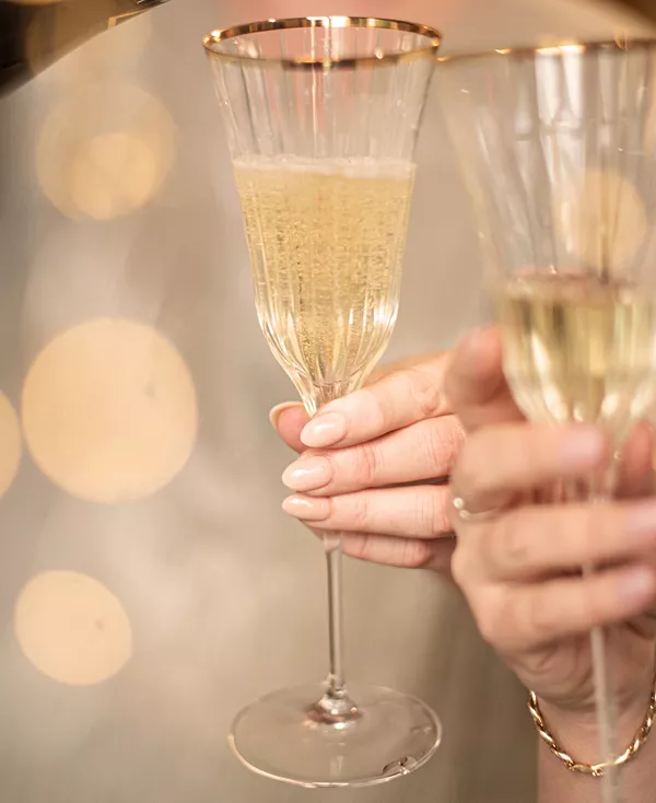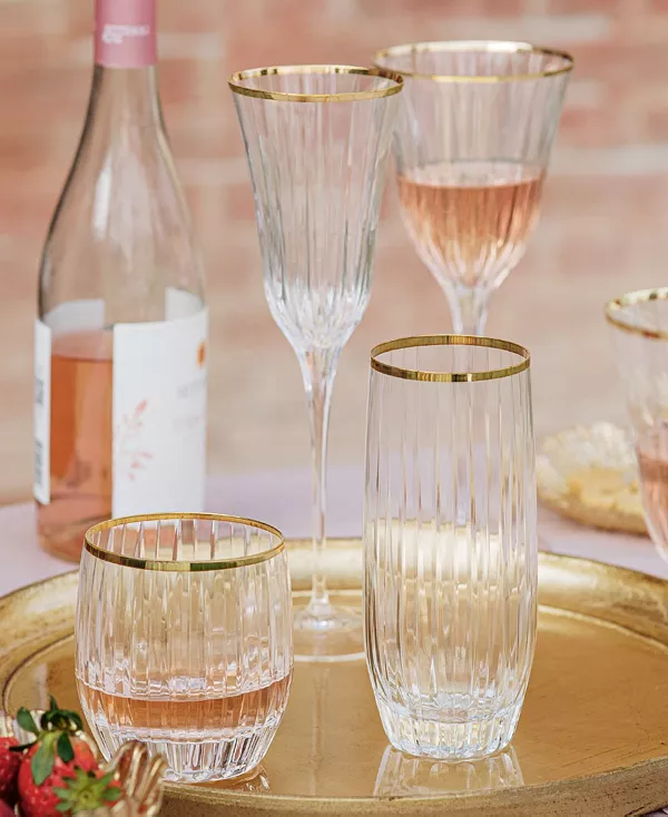 Классический и праздничный бокал для шампанского Natalia Gold украшен великолепным золотым ободом, напоминающим ограненный хрусталь.