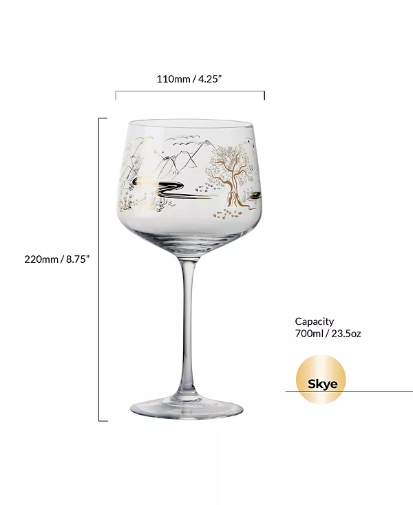 Поднимите свои ощущения от употребления джина на новый уровень с бокалами Skye Gin. Эти бокалы с золотой наклейкой с изображением Шотландских Гебридских островов – воплощение роскоши. Современная форма с округлыми чашами и длинными ножками позволит вам наслаждаться джином с комфортом. Изготовленные вручную опытными мастерами, бокалы поставляются в красивой подарочной коробке с золотой отделкой. Идеально подходит для ценителей джина или в качестве подарка. Рекомендуется мыть вручную.