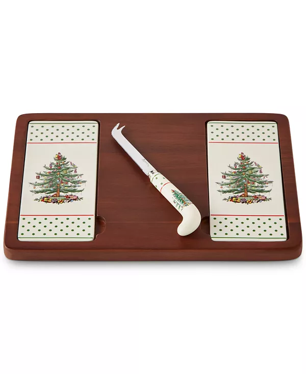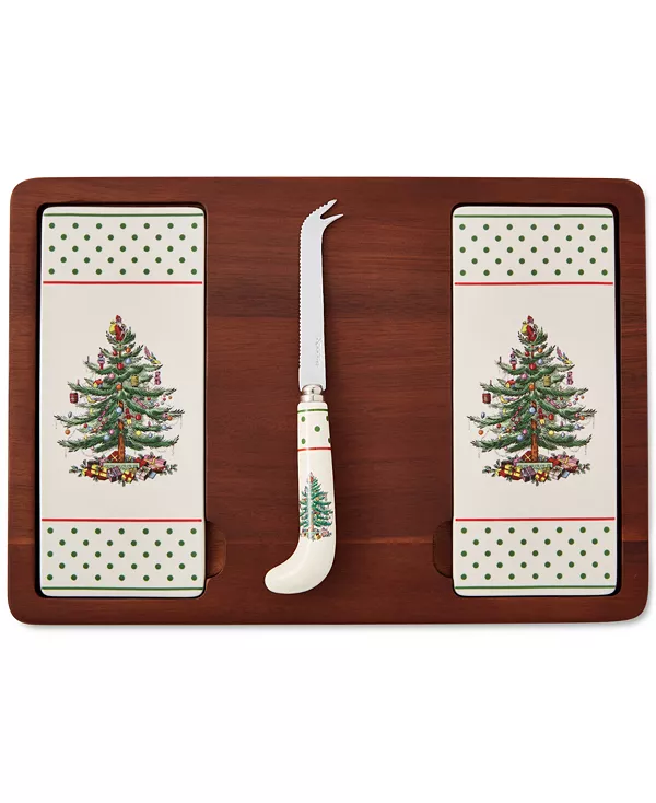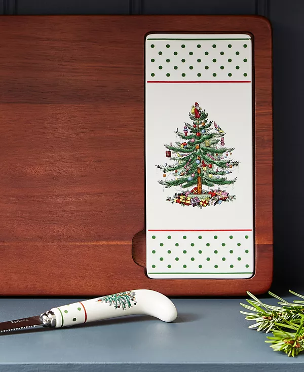 Доска для сыра «Рождественская ёлка» в горошек от Spode станет прекрасным дополнением к вашей коллекции. Она включает в себя две съёмные керамические пластины и подходящий нож для сыра. Она идеально подходит как для угощения гостей, так и для подарка любителю сыра.