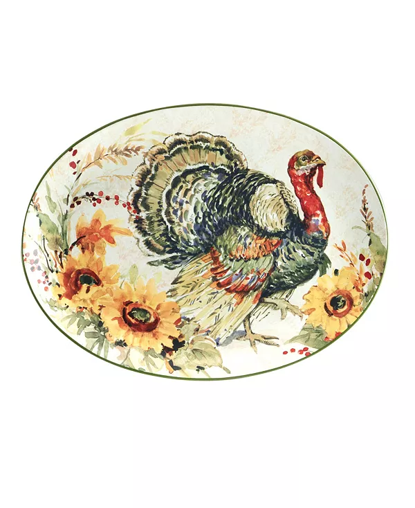 Отпразднуйте День благодарения и осень с ярким и красочным овальным блюдом для индейки «Утро урожая» от Certified International, разработанным художницей Сьюзан Уингет.