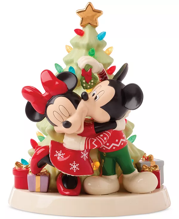 Добавьте ещё больше радости в праздники с этой светящейся фигуркой ёлки от Lenox! Микки и Минни Маус радостно обнимаются в яркой и радостной обстановке. Подсвечивается разноцветными рождественскими огнями.