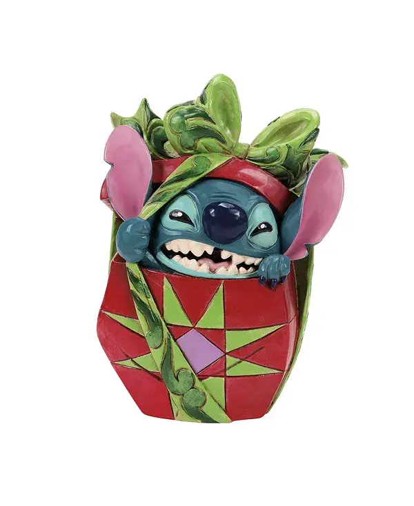 В этом игривом дизайне Джима Шора инопланетянин Стич вырывается из яркого рождественского подарка, демонстрируя свою озорную улыбку, разрывая праздничную упаковку. Своим радостным хаосом Стич доказывает, что его живое присутствие — лучший подарок.