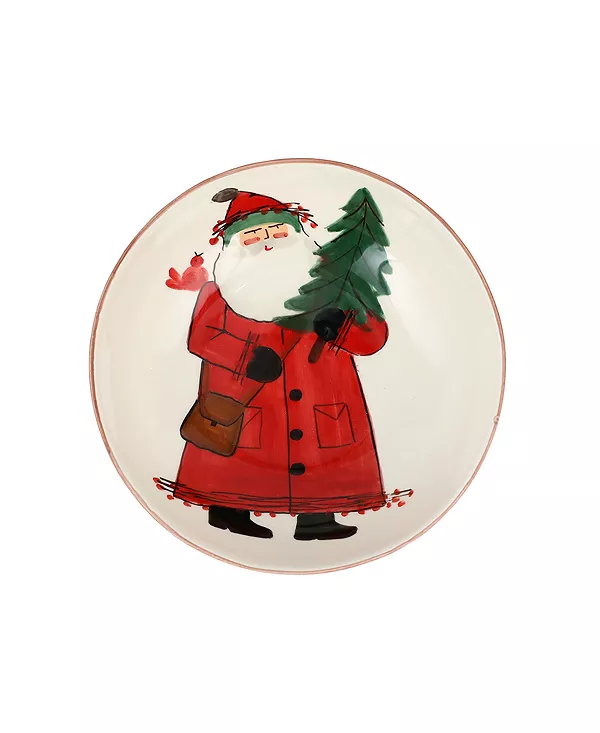 Фирменная праздничная коллекция VIETRI – это праздник ностальгии, семьи и праздничного настроения. Когда мастер-ремесленник Алессандро Таддеи был маленьким мальчиком, мама читала ему истории о Баббо Натале, итальянском Санта-Клаусе. Алессандро воплощает эти воспоминания в причудливые и радостные узоры на старинной средней сервировочной миске с изображением Святого Николая.