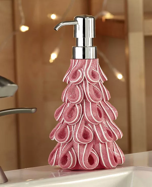 Декоративный дозатор для лосьона/мыла/дезинфицирующего средства Avanti Ribbon Candy – это фигурное дерево, выполненное из переплетающихся розовых и белых лент из конфет. Изготовлено из прочной смолы, расписанной вручную, для простоты ухода. Дополнено блестящим серебристым дозатором. Добавит праздничную нотку в любую ванную комнату или кухню.