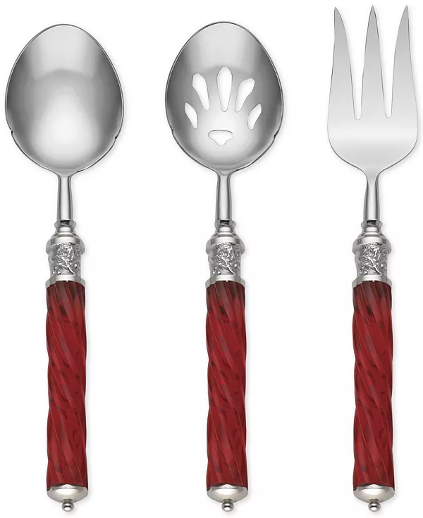 Сервировочный набор из 3 предметов Holiday Jewel Spiral с красными спиральными ручками и головками из нержавеющей стали создан для праздничного угощения. Можно мыть в посудомоечной машине и не потускнеть.