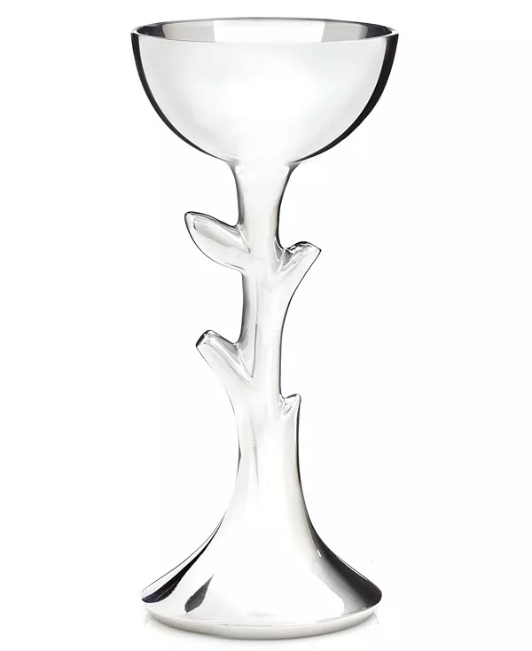Эта скульптурная чаша для кидуша от дизайнера Мэрилин Дэвидсон сияет ярким блеском на шаббатнем столе, напоминая всем об истории, которую она представляет. Прекрасный подарок на свадьбу или другой праздник. От Nambe.