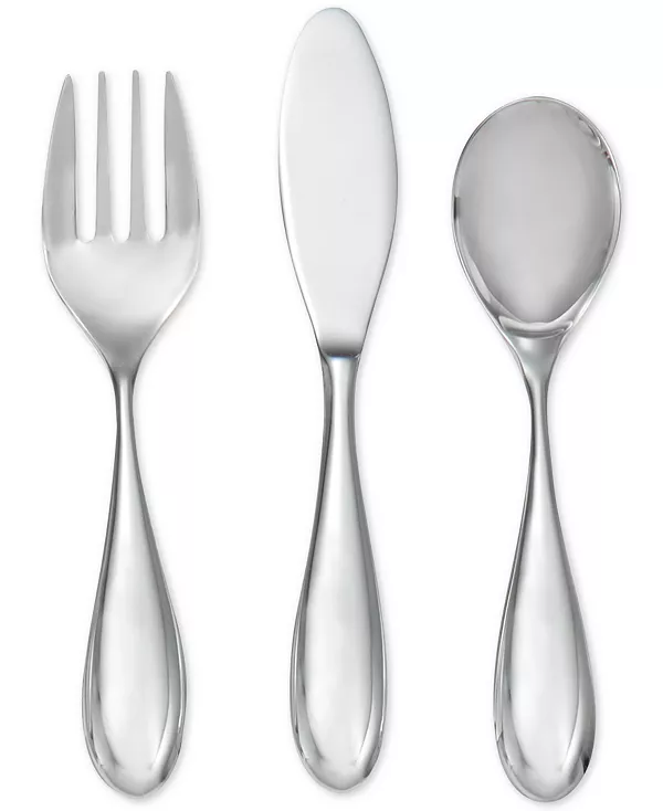 Разработанный специально для маленьких ручек, набор столовых приборов Nambé Kibo для малышей включает вилку, нож и ложку из гладкой и прочной нержавеющей стали.