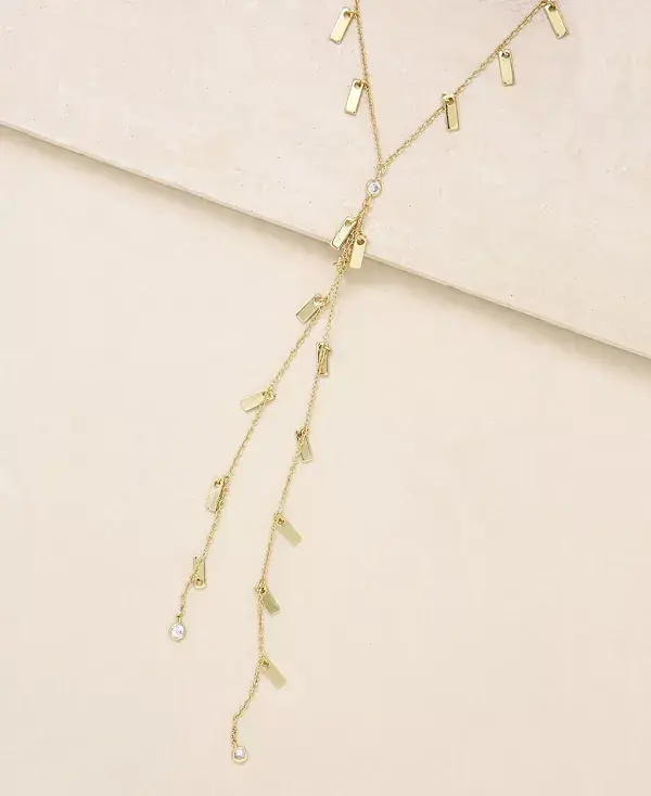 Свисающие перекладины придают изысканность этому классическому лариату. Кроме того, он украшен кристаллами кубического циркония.