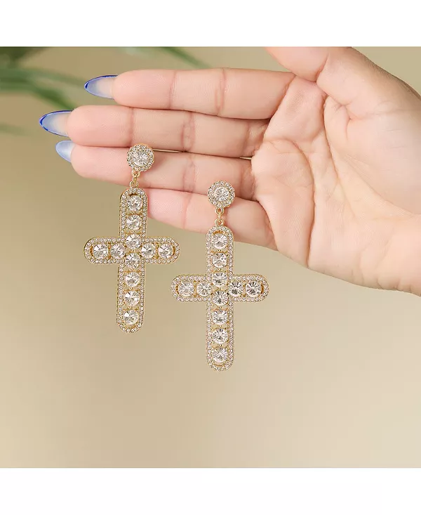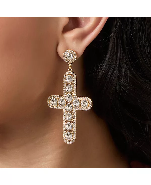 Сверкайте верой и модой в этих мерцающих кристальных серьгах-крестах от Джессики Симпсон.