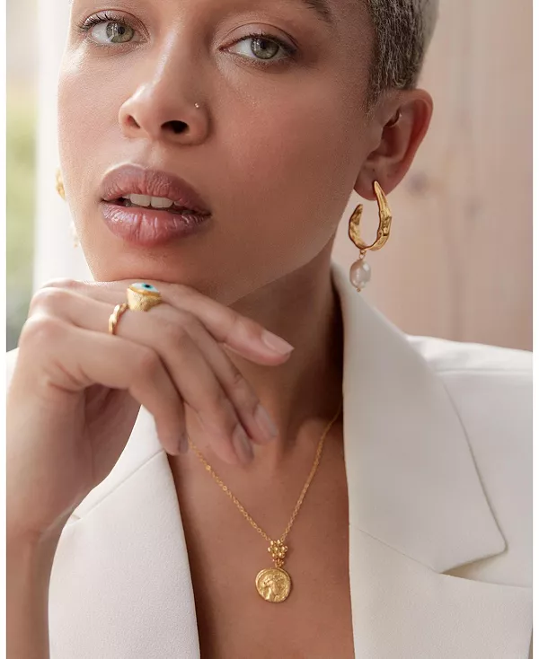 Вдохновлённое мифологией и древними талисманами, это позолоченное ожерелье изготовлено вручную с фактурной подвеской в виде монеты, изображающей Деметру — олимпийскую богиню урожая и земледелия.