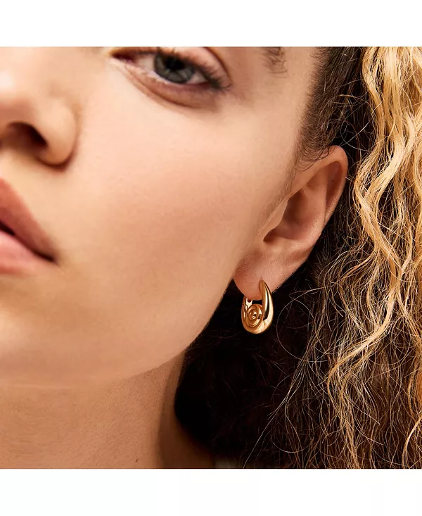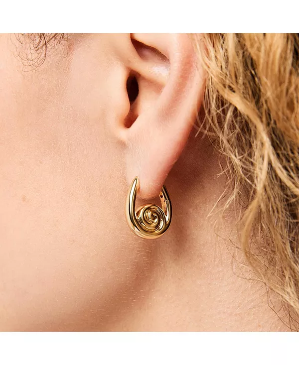 Эти эффектные золотые серьги — это нечто большее, чем просто обычные серьги-кольца. Водонепроницаемые и не тускнеющие, эти серьги, покрытые 14-каратным золотом, отличаются смелым дизайном, вдохновлённым морскими ракушками, и идеально отполированной отделкой.