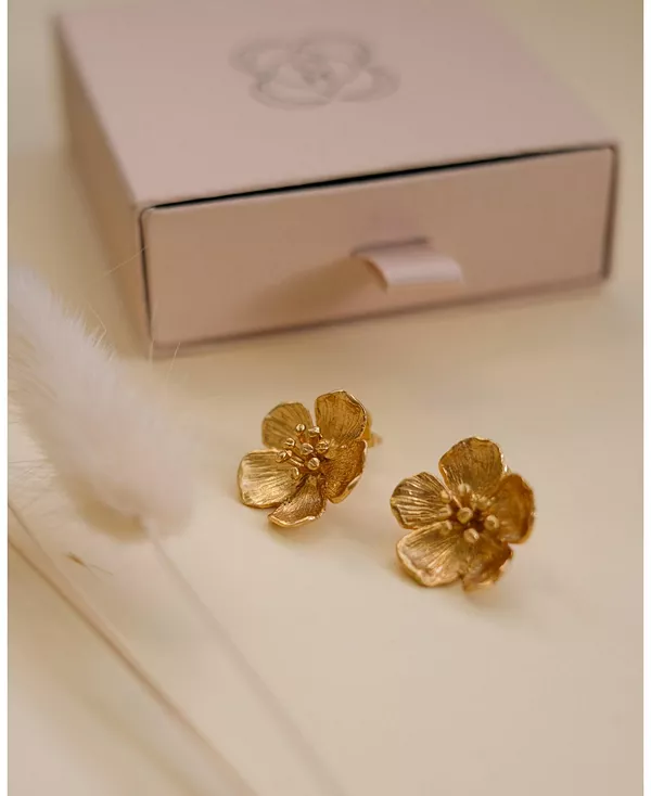 Очаровательный цветочный дизайн придает этим золотым серьгам-гвоздикам нотку мягкой элегантности.
