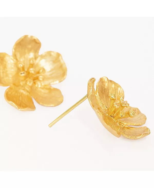 Эти серьги-цветы, покрытые 21-каратным золотом, имеют великолепную текстурированную отделку и идеально подходят для повседневной носки.