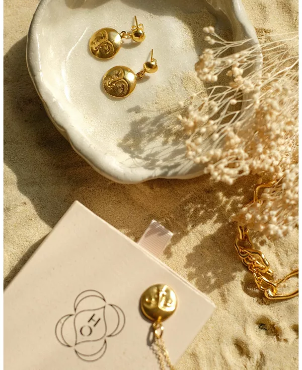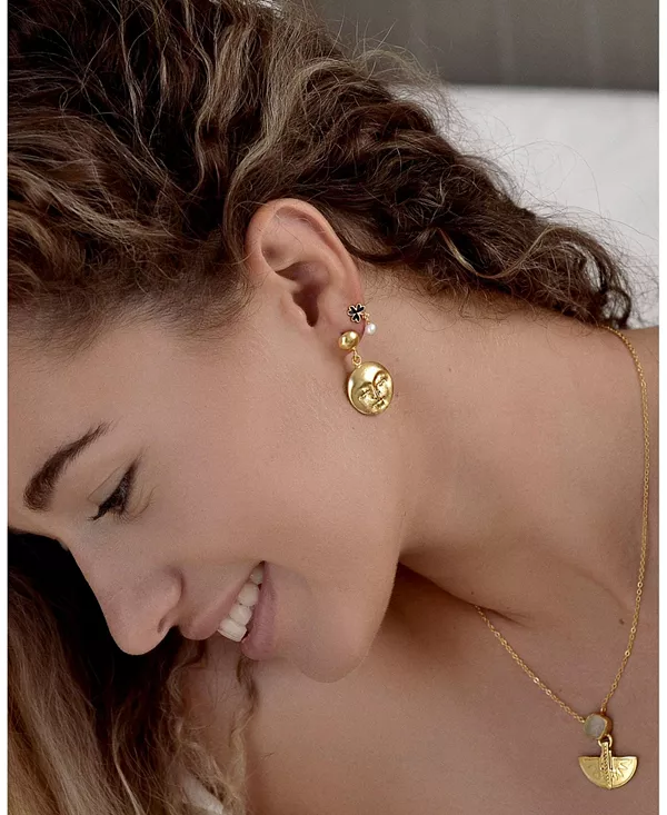 Эти золотые серьги-подвески с безмятежными лунными лицами создают очаровательный старинный образ. Изящные детали и матовая отделка делают эти серьги-подвески идеальной парой для вашей шкатулки с драгоценностями. Дополните эти милые золотые серьги подходящей золотой подвеской Moon Face. Золотые серьги-подвески Ottoman Hands Moon Face поставляются в одной из наших экологичных шкатулок и хлопковых мешочков и готовы к подарку.