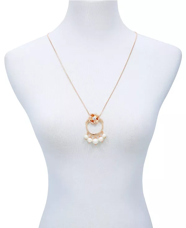 Добавьте немного романтики с этим кулоном T Tahari. Изящные искусственные жемчужины свисают с очаровательного золотистого кольца, украшенного прекрасным цветком с кристаллом в центре.