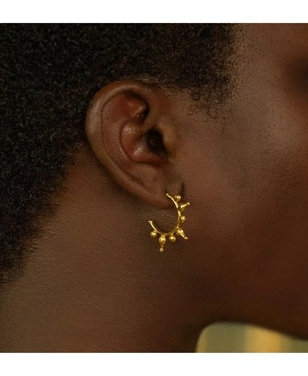 Эти небольшие серьги-кольца украшены филигранными деталями, покрытыми 21-каратным золотом, что придаёт этой паре ручной работы изысканный богемный вид. Эти золотые серьги-кольца можно носить отдельно или сочетать с другими серьгами, создавая изысканный образ.