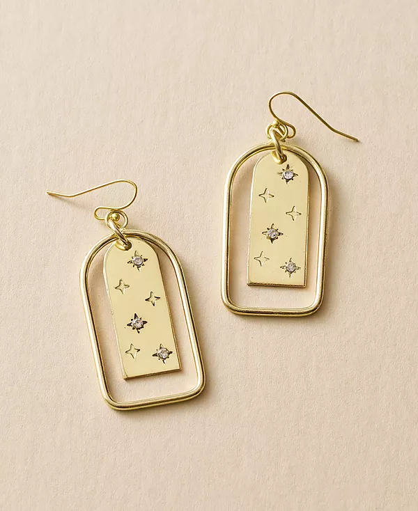 Серьги Sitara Starry Archway украшены миниатюрными кубическими циркониями, расположенными в золотистой арке, напоминающей вид на звёздное небо через окно. Эти элегантные серьги изготовлены вручную с соблюдением этических норм и с использованием старинных ювелирных техник индийскими мастерами.