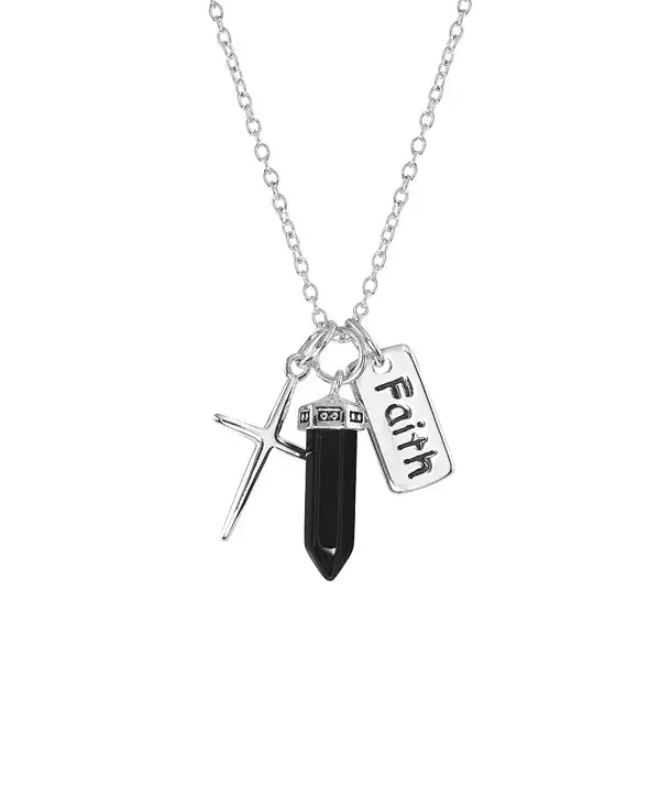 Комбинируйте и сочетайте съёмные подвески в виде чёрного агата, креста и вдохновляющей пластины веры на цепочке, чтобы создать свой образ. Ожерелье с подвеской-подвеской из посеребрённой латуни с пружинным замком.