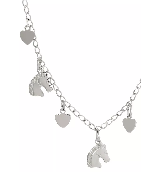 Это очаровательное цепочное ожерелье с цепочкой из проволоки замысловато переплетает элегантные подвески в виде лошадиных голов с нежными сердечками, воплощая симбиоз между грацией лошади и искренними чувствами.