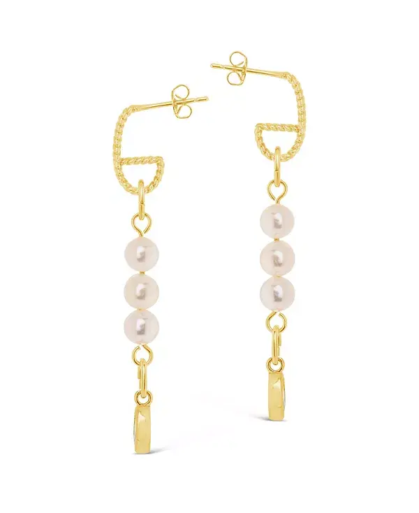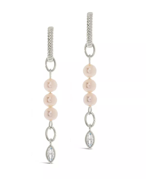 Сверкайте и блестите в этой паре сережек, украшенной искусственным жемчугом. Эти элегантные серьги-гвоздики украшены подвесками-капельками из искусственного жемчуга и кубического циркония, которые обязательно привлекут внимание.