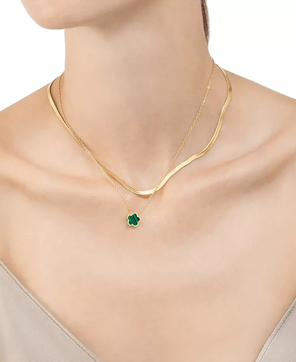 Ожерелье из зеленого перламутра с клевером Adornia, green