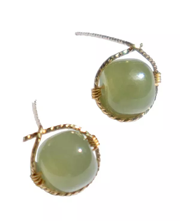 Создайте стильный образ с помощью серег Sydney. Каждая серьга, изготовленная из бусин натурального зелёного нефрита, украшена искусно выполненной золотой петелькой. Эти классические серьги-гвоздики добавят изящный яркий акцент любому образу.