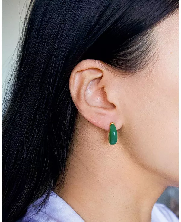 Добавьте ретро-нотку в свой образ с нашими серьгами-кольцами в форме полумесяца. Смелая интерпретация классического силуэта. Серьги изготовлены вручную из халцедона с толстым покрытием из стерлингового серебра 18 карат. Подставки для проколотых ушей из стерлингового серебра с толстым покрытием из 18-каратного золота.