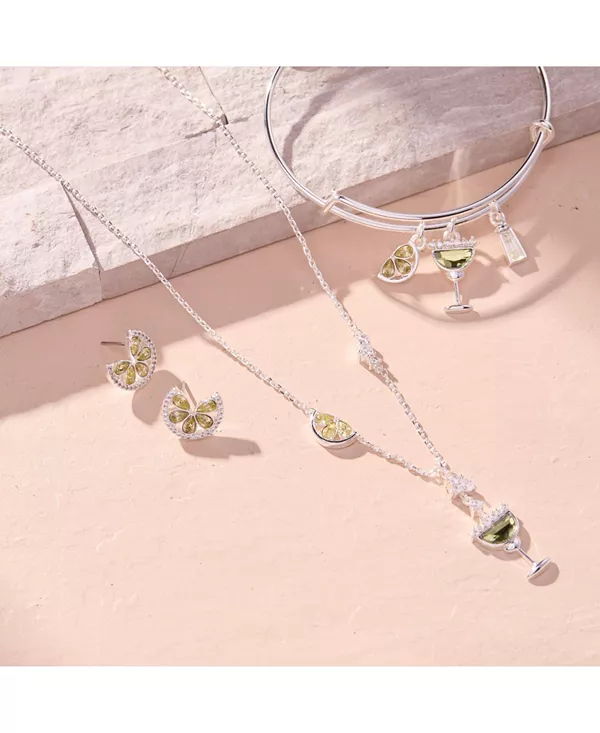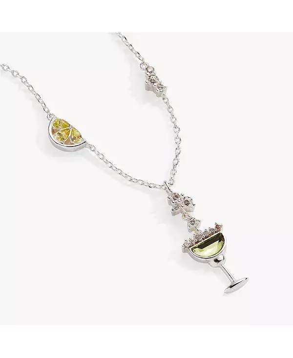 На марше, собирайтесь, поехали! Это игривое ожерелье с подвеской навевает тропическое настроение благодаря мерцающей дольке лайма с зелеными кристаллами, деталям из прозрачных кристаллов, напоминающих соль, и каскаду прозрачных кристаллов, которые «сливаются» в сверкающий зеленый шарм в форме бокала для «Маргариты». Идеальное украшение, чтобы добавить изюминки любому образу.