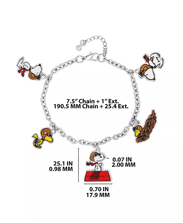 Отпразднуйте очарование Снупи и его друзей с этим серебристым браслетом с разноцветными эмалевыми подвесками в виде персонажей «Peanuts».