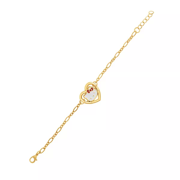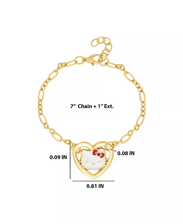 Добавьте очаровательного очарования с этим золотистым браслетом Hello Kitty с рамкой в виде сердца и эмалевой мордочкой Hello Kitty.