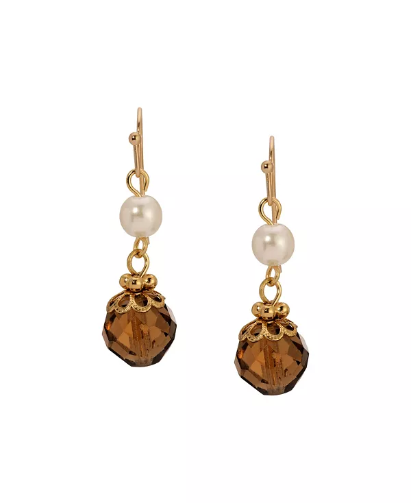 Добавьте ярких красок в свой гардероб с помощью этих изящных двойных серег с бусинами из искусственного жемчуга и топаза.