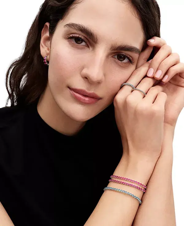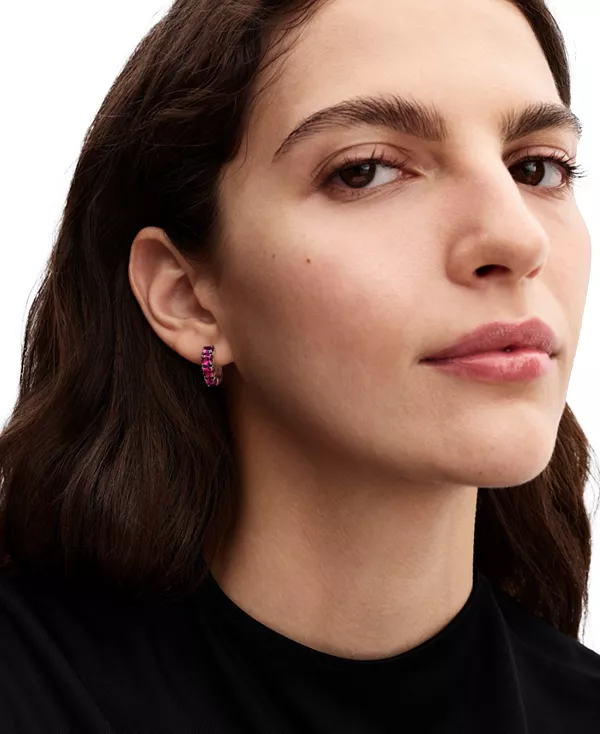 Подчеркните свой стиль розовыми серьгами-кольцами из стерлингового серебра с искусственными кристаллами цвета флокса. Изящный дизайн с рядом камней идеально подходит для повседневной носки.