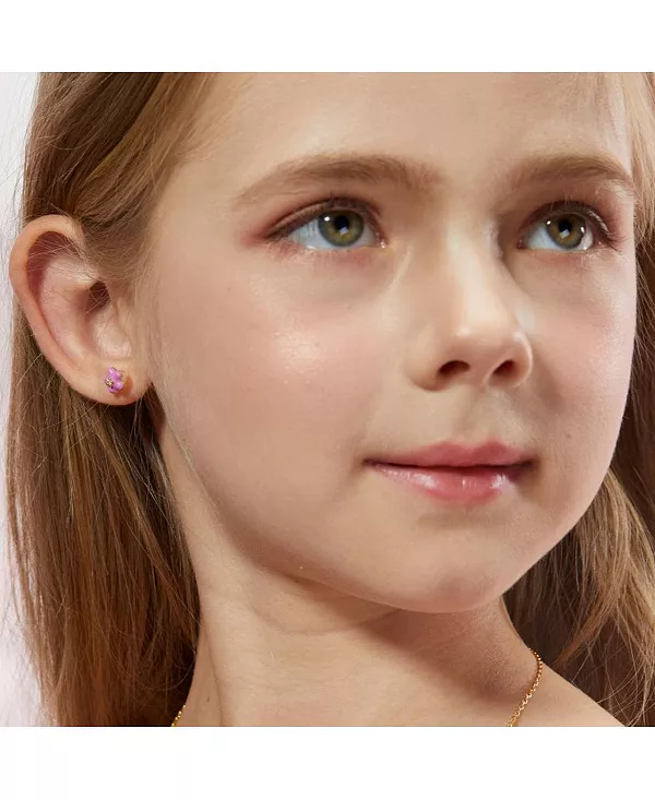 Эти изящные золотые серьги-гвоздики украшены яркими розами, каждая из которых украшена сверкающим кристаллом в центре. Нежные и очаровательные, они добавят нежного цветочного акцента в коллекцию украшений любого малыша. Изделие поставляется в нашей фирменной розовой подарочной коробке.