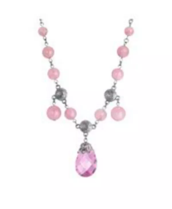 Это ожерелье с круглыми розовыми бусинами и мерцающими светло-розовыми кристаллами создает нежную и игривую цветовую палитру. В центре – потрясающий подвес из светло-розового стекла бриолет, играющий на свету.
