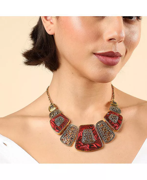 Женское позолоченное эффектное ожерелье Sohi, red