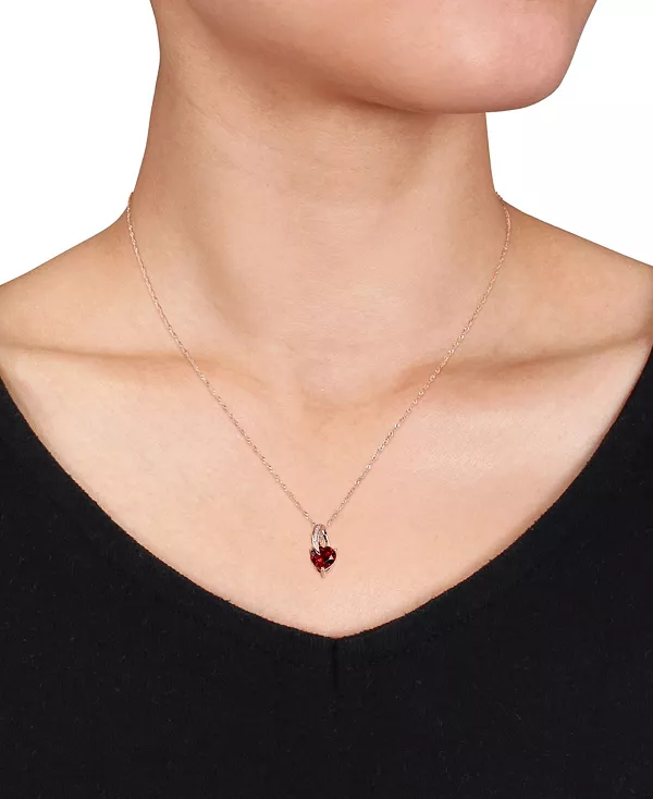Подвеска в форме сердца с гранатом и бриллиантами и цепочкой Macy'S, red 90 327₽