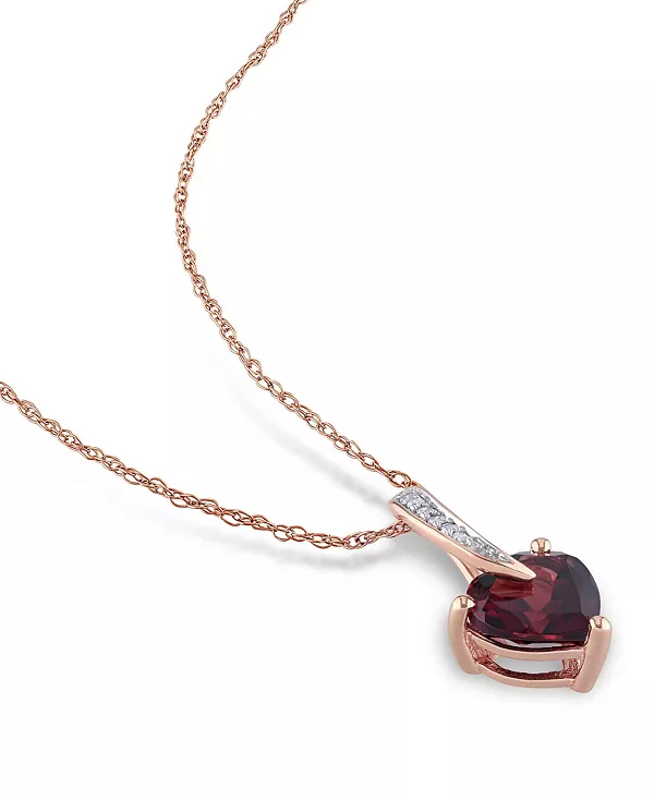 Подвеска в форме сердца с гранатом и бриллиантами и цепочкой Macy'S, red
