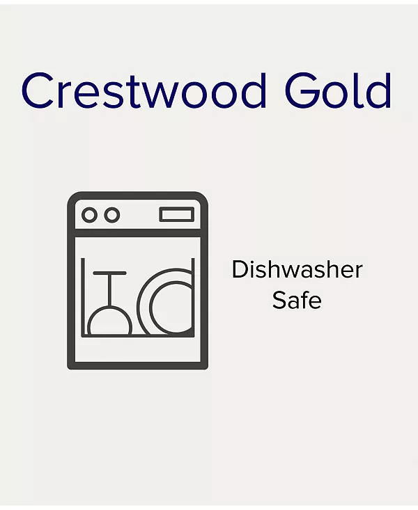Crestwood Gold привнесет изысканную элегантность в ваш стол! Этот потрясающий узор из белоснежного фарфора в сочетании с золотой окантовкой создаёт элегантную простоту. Внешняя золотая окантовка украшена гравировкой в виде переплетающихся листьев. Crestwood Gold предлагает как элементы сервировки, так и широкий выбор предметов сервировки и аксессуаров. Crestwood Gold достаточно прочный для ежедневного использования и подходит для мытья в посудомоечной машине!
