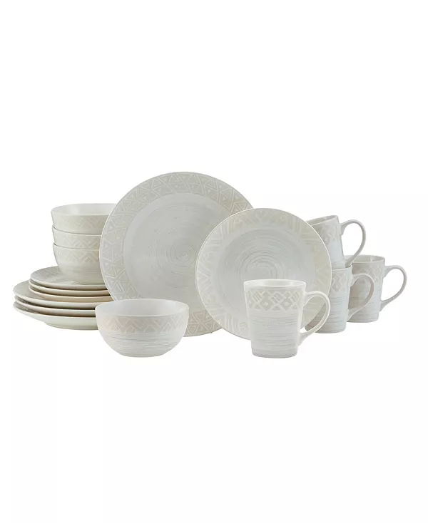 Этот набор сочетает в себе классическую элегантность и современную изысканность. Каждый предмет кремового цвета имеет деревенский спиральный дизайн, окаймленный широкой полосой, украшенной привлекательным геометрическим узором. Эта коллекция — идеальный способ привнести современный стиль в ваши обеденные встречи.