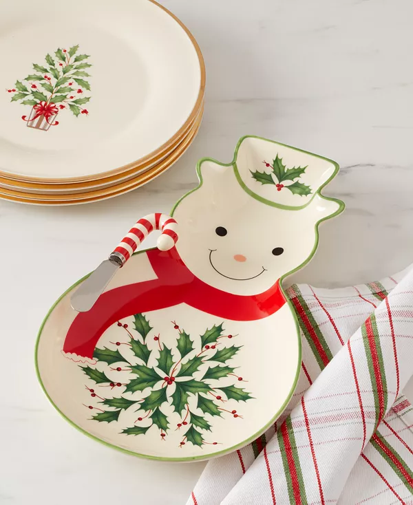 Подавайте вкусные праздничные угощения с этим праздничным набором подноса и распределителя из коллекции Lenox Holiday. Поднос с улыбающимся снеговиком украшен культовым рисунком падуба и ягод. Подходящий к нему распределитель с ручкой в форме леденца создаст праздничное настроение.