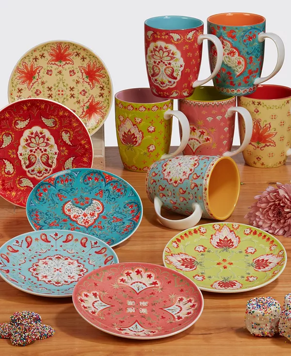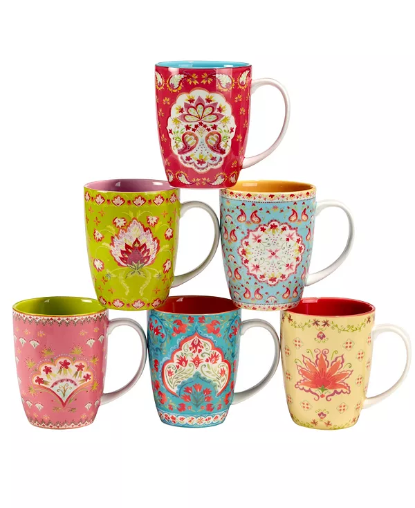 Франческа из Certified International представляет яркие, красочные узоры на шести кружках, созданных художницей Аной Дэвис по мотивам прекрасных индийских мотивов. Фарфоровые кружки объёмом 14 унций (435 мл) имеют шесть различных дизайнов, которые можно комбинировать между собой, и однотонные внутри.