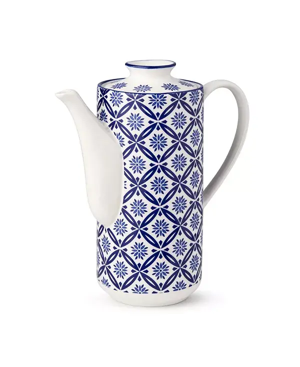 Украсьте свою чайную или кофейную сервировку чайником Madison, элегантным дополнением к вашей коллекции посуды. Он отличается очаровательным геометрическим узором в сине-белых тонах, который добавит непреходящее очарование любому столу. Чайник Madison идеально подходит для подачи чая, кофе или других горячих напитков, встреч, бранчей или спокойного отдыха.
